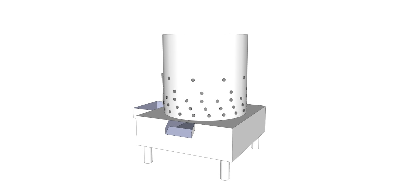 Hecha en acero inoxidable, se coloca al pollo en la máquina y las plumas son desplumadas de él.